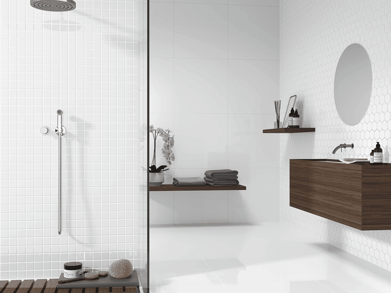 Our Alaska gloss white tile will help make your room lighter and brighter which really helps if you’re trying to create the illusion of space.