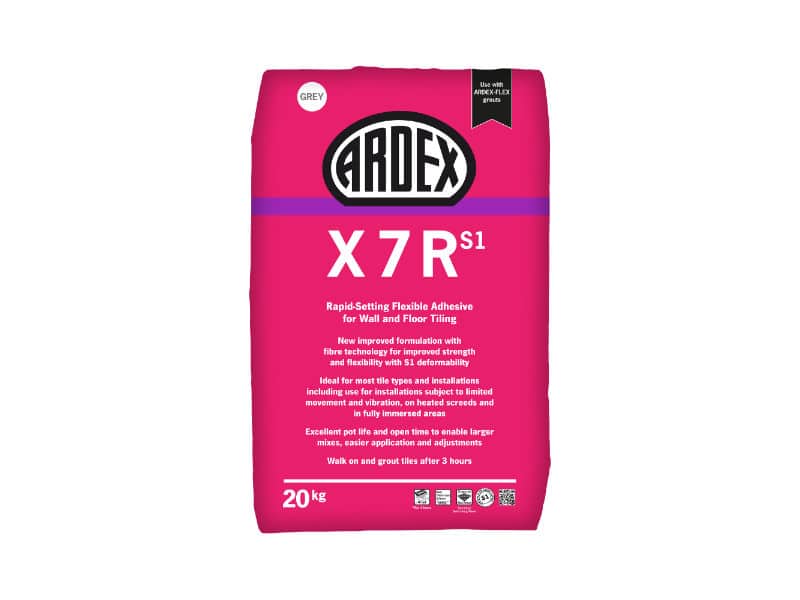 Microtec fibre reinforced, cement-based, floor and wall tile adhesive with an extended working time of up to 60 minutes. Specifically formulated to have enhanced properties of grab and flexibility. The advanced slump resistance properties make Ardex X77W ideal for fixing large format wall tiles. This adhesive can be used to fix ceramic or porcelain wall & floor tiles, as well as glass mosaics and terracotta tiles.