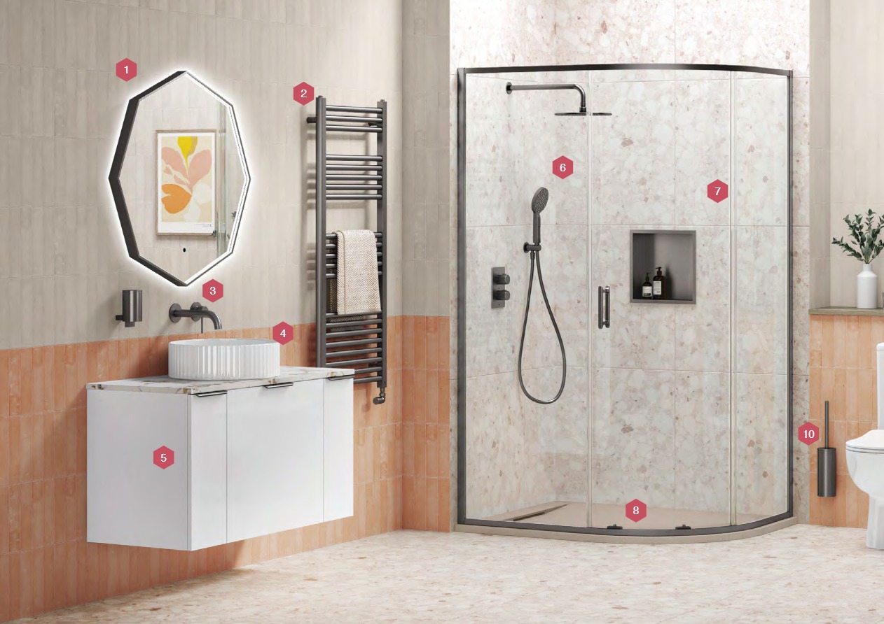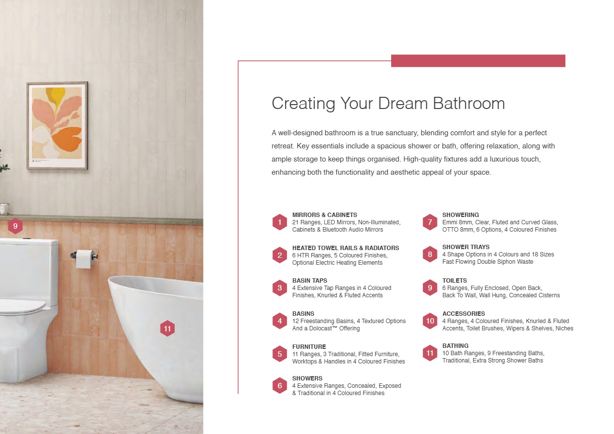 From contemporary wall to Victorian floor tiles, black shower cubicles to free standing baths,