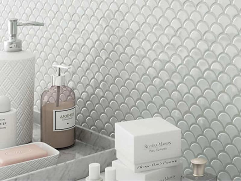 These fan tiles are gaining popularity once again, and we can see why! The glossy white seems to have endless appeal – especially when hit by the light.