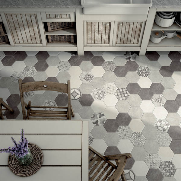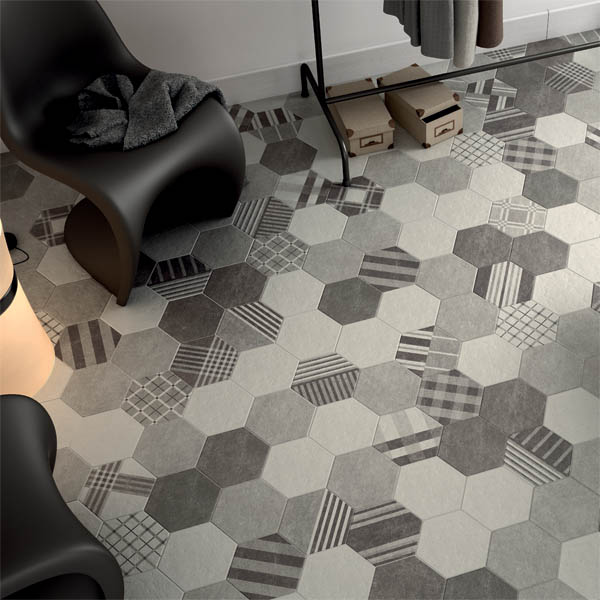 The unusual shape for a tile gives a honeycomb appearance when seen on mass.
