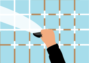 Use a rubber edged squeegee to fill the spaces with the grout. Hold at a 45-degree angle.