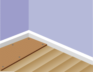 Screw a 1-inch thick piece of wood to the floor perpendicular to the tiles. You’ll be using this as a guide to lay all the other tiles against.