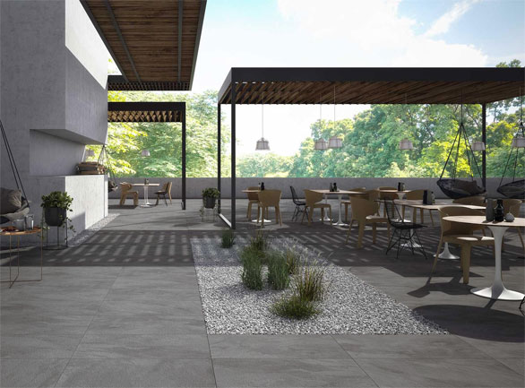 We find that Mid grey is an excellent base colour as it is adaptable for many different environments. If you look closely, you’ll notice this tile blends the tones of light & dark grey beautifully. Whether you’re looking for a traditional or a minimalist look, these mid-grey patio floor tiles will look great.