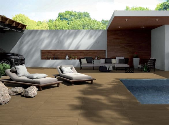 Montagne Brown 20mm patio tiles. An elegant 450x900mm patio tile using shades of browns. These 20mm tiles are perfectly suited for use in exterior areas such as patios, balconies, drives and gardens. The frost proof body and anti-slip texture make these safe for all weather conditions.