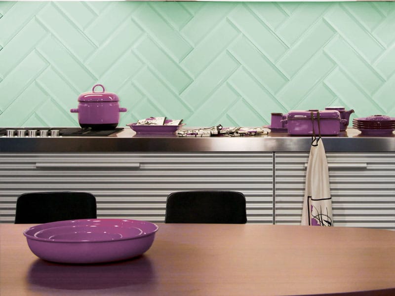 A classic metro shape ceramic wall tile with a feature enriching bevel, what makes the Montesco range of tile stand out from others on the market is the on trend colours of pastel green and blue as well as a strong dark colour called liquorice.