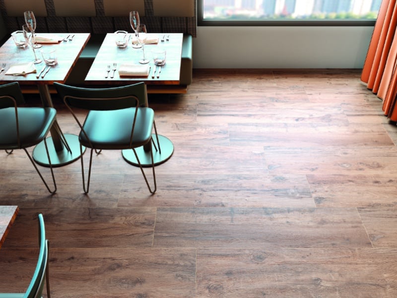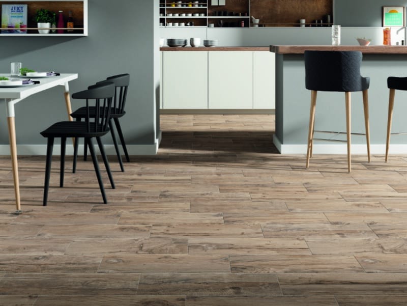 You’ll find these porcelain tiles hardwearing and easy to maintain. Unlike wood flooring, they don’t require any specialist sealers either.