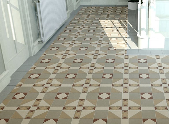 An intense Gothic style pattern, using unique shapes with subtle, muted tones. Victorian floor tiles made from strong, hard wearing ceramic and perfect for any interior or exterior application.