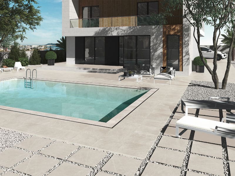 Rock Bone 20mm patio tiles provide a natural stone effect finish with a strong porcelain body. The R11 non slip rating and frost proof qualities make this range perfect for safe use all year round. Rock offers comfortable barefoot walking due to it’s soft grip technology.