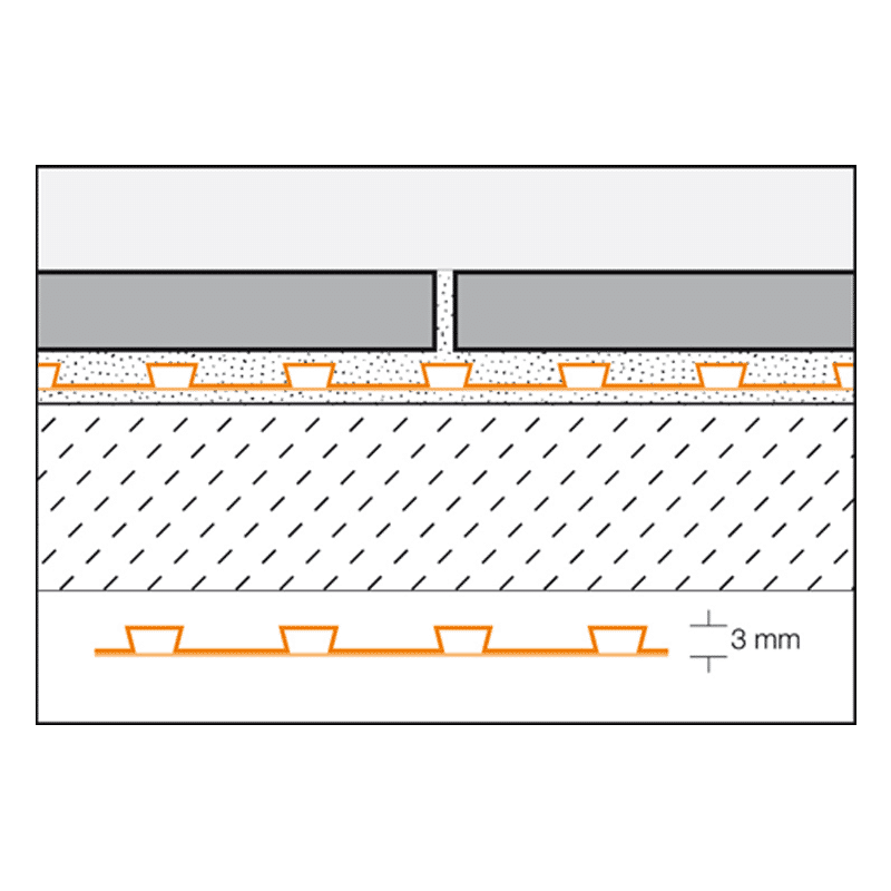 Schluter Ditra uncoupling Matting uncouples the floor covering from the substrate and neutralizes the tensions between the substrate and the tile covering. Likewise, stress cracks in the substrate are bridged and are, therefore, not transferred to the surface covering. Easy to install as simply roll out and fix with either AF200 adhesive or a powder floor tile adhesive