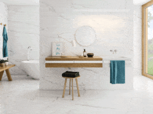 Natural stone effect tiles brings an added layer of richness and permanence. Deep-veined marble-effect tiles, such as Statuario Marble, introduce sculptural interest and celebrate the inherent variation of the material. Used thoughtfully, these surfaces add quiet drama and a sense of longevity to interiors.