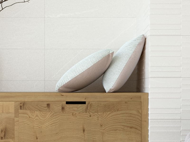Tulip blanco is part of a range of Stone Effect Ceramic wall tiles in three soft colours, all with matching décor feature tiles. These Large Format Tiles are a perfect choice for your Bathroom or Kitchen, making areas feel more spacious.  Tulip works very well with natural light thanks to the soft tones and textures of the tiles.