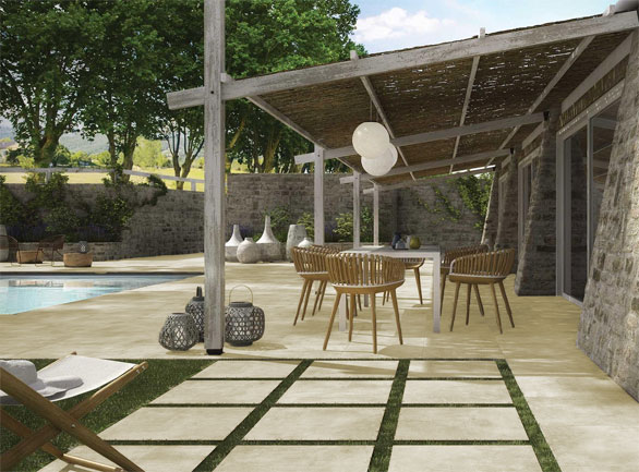 Upnuance sand 20mm patio tiles. A modern concrete effect range of patio tiles. These 600x600mm porcelain patio tiles are perfectly suited for use in exterior areas. Gardens, pathways, driveways or social areas would benefit the most from this modern collection.