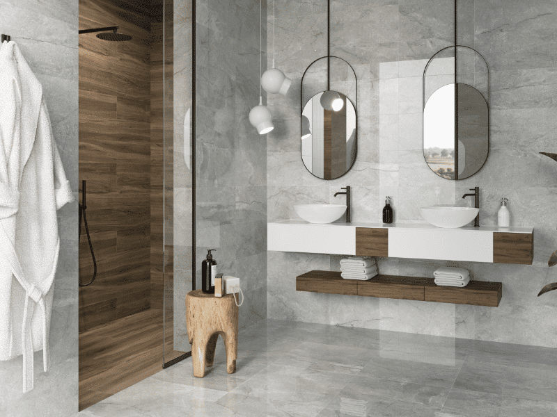 Gloss grey tiles for use on walls & floors. A brand new, huge range of gloss & matt porcelain tiles in 2 popular sizes plus a mosaic in each colour. The Wells collection offers versatility due to the 600×600 & 600×300 tiles which can both be used on the walls and floors.